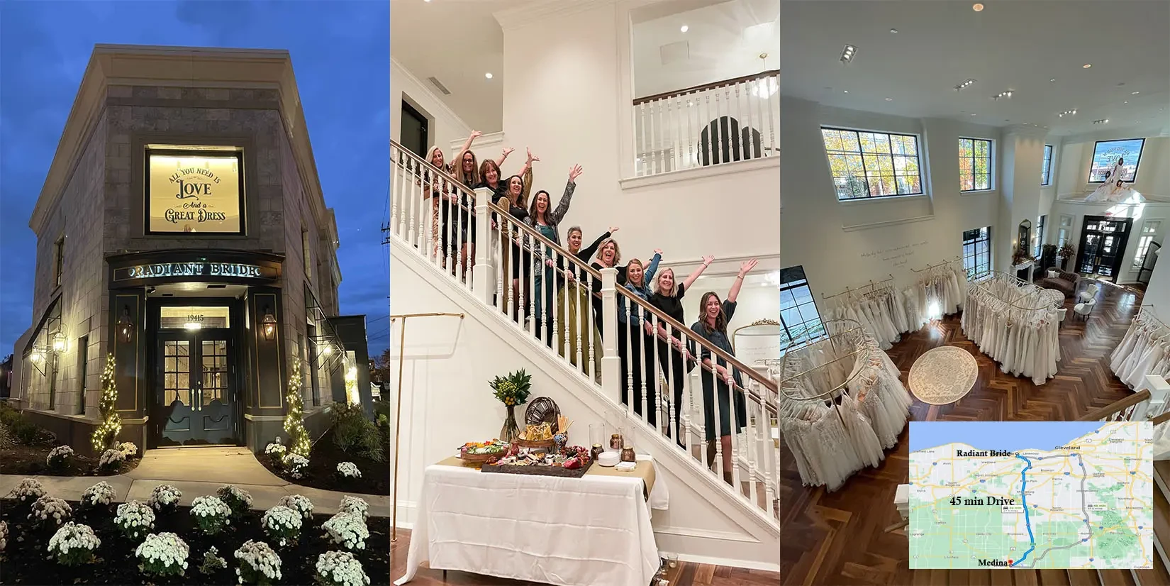 Medina brides, find your dream wedding dress with an NYC-inspired experience at Cleveland's premier bridal shop, Radiant Bride, less than an hour away.